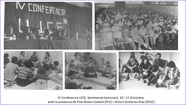 Una cosa portava a l’altre. “Para el día 12 de octubre, la Unión de Juventudes Comunistas de España (UJCE) tiene prevista la celebración de su IV Conferencia. Y lo hará abiertamente, abandonando la clandestinidad impuesta por la dictadura, en el cine San Pol de Madrid, al que asistirán mil delegados en representación de las nacionalidades y regiones del Estado español. Días atrás, la UJCE presentó en el Ministerio de la Gobernación la notificación de tal convocatoria, de la que figuran como promotores Concha Fondo y Domènec Martínez.” Això és el que deia Mundo Obrero, anunciant la Conferència. La dictadura va prohibir i denegar aquesta possibilitat. Però la vam fer, clandestinament, a Sentmentat (un seminari, que havia estat prèviament reservat per Consol Hernández, i Agustí Daura, capellà del PSUC, per una trobada de joves), durant els dos primers dies: 10 i 11, i posteriorment la seva projecció pública a Barcelona el 12 d’octubre (a l’església de la Verge de Montserrat del barri del Guinardó).