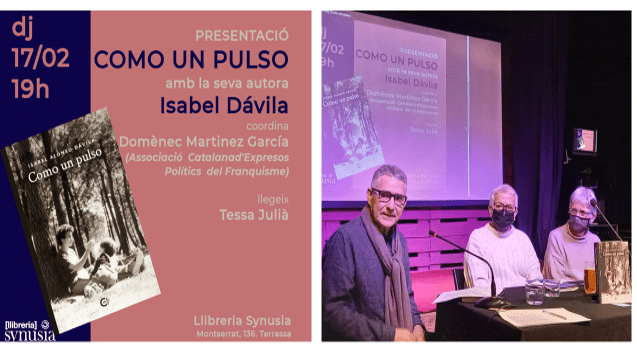 El dijous 17 de febrer vam presentar a la llibreria Synusia de Terrassa el llibre Como un pulso de la historiadora Isabel Alonso. L’escriptora Tessa Julià va fer la lectura de diferents fragments del text. L’autora ens va desvetllar algunes de les claus de la seva primera novel·la, unant la seva experiència vital i la seva capacitat creativa en una narració que ens atrapa fins al final.