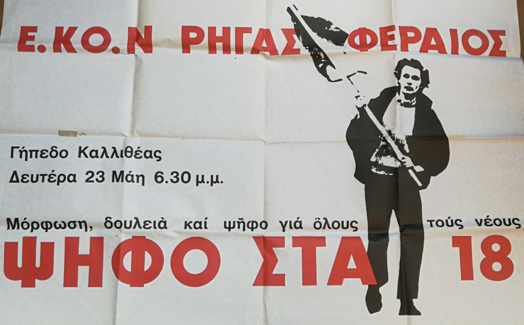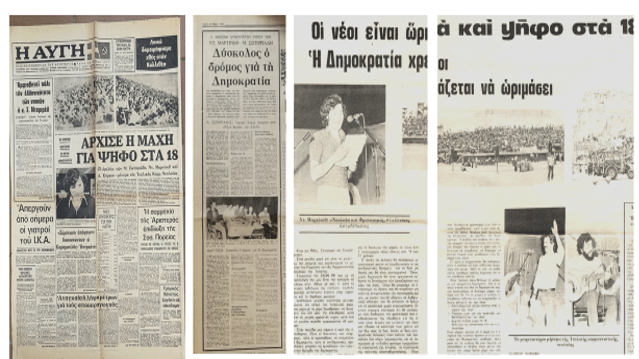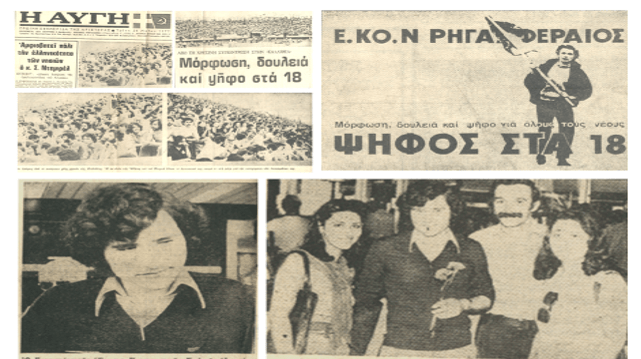 Les fotografies i els titulars dels diaris són inequívocs: “L’estadi de Kallithea va viure ahir un moment històric. Hi va haver parlaments de M. Sotiriadis, D. Martínez i L. Kyrkou, i un missatge de la FGCI. Milers d’homes i dones joves, convocats per EKON Rigas Feraios, van convertir el clam “Vot als 18” en un gran eslògan panhel·lènic per a tota la joventut. En una apassionada intervenció Manos Sotiriadis va destacar que el Vot als 18, és un reconeixement a la capacitat i madures de la gent jove, que està lluitant pel dret a l’educació i a un treball digne. És per tant una reivindicació nuclear per assumir els problemes, promoure els canvis i la participació institucional del jovent a tots els àmbits de la vida política i social. No és possible que els joves amb 18 anys no puguin anar a votar i en canvi si ho poden fer, formant part del sistema productiu, associant-se als sindicats i creant comunitats d’estudiants amb una capacitat ben reconeguda al món desenvolupat. Cal proposar a totes les forces progressistes de la joventut un mapa dels drets individuals, polítics i socials, va concloure. El majestuós míting de Kallithea és l’inici de la lluita de la joventut a la conquesta d’aquest dret bàsic. El dret a vot als 18”. Com ja he dit no he sabut conservar o trobat les notes de la meva intervenció. Però segur que van ser de suport a aquesta iniciativa que ens agermanava i que servia també per projectar una dimensió europea a les nostres justes reivindicacions. La solidaritat internacionalista, des del pluralisme i les llibertats, i l’antifeixisme resistent. Les cròniques escrites diuen que es van escoltar cançons de la resistència republicana i de l’exili espanyol. També músiques gregues tradicionals. Les bandes d’Eleni Tsauli, Domna Samiou, i de la banda de l’Ajuntament d’Atenes. Si que tinc molt present les rotllanes de centenars i milers de joves, i jo formant part d’ells, d’aquell sirtaki que va posar punt i final a l’acte.