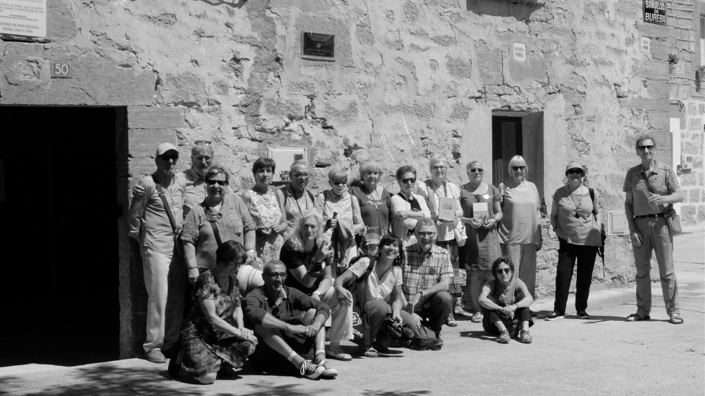 El sábado 23 fuimos a Bañuelos de Bureba a visitar la Escuela del maestro Benaiges. Ya conocíamos la historia de este maestro de Montroig del Camp —a quien se declaró Hijo Ilustre el 12 de mayo del año 2021[v]—. “El retratista”, excelente documental y otros libros[vi] ya nos habían explicado el secreto de aquella fotografía donde aparecen 9 niños y 8 niñas, y un maestro que quería llevarlos a conocer el mar. Atender las explicaciones directas, pedagógicas y siempre rigurosas de las personas de la Asociación, que mantienen viva esta Escuela museo, constituyó una experiencia muy instructiva y emocionante. Entrañable. Como la pequeña placa sobre la puerta del modesto edificio donde se puede leer: Escuela Antonio Benaiges “Respetemos al niño que sea niño y sienta luego, la necesidad de ser hombre”. Toda una declaración de principios. El maestro catalán había llegado al pequeño pueblo de Bañuelos en el año 1934, y alteró la vida de los niños y las niñas que iban a la escuela, haciéndoles soñar con un futuro mejor. Por esta razón lo asesinaron el 19 de julio de 1936, con treinta y tres años, después de pasearlo subido en una camioneta, maltratado y humillado, por las calles de Briviesca. Una historia silenciada, como la de centenares y miles de crímenes todavía por escribir, que se dilatan en el tiempo de la memoria frente al olvido, bajo el manto de tierra y anonimato de las cunetas. De la Escuela nos hemos llevado chapas, puntos de libro, fotografías de la estufa, la gramola, los pupitres y la imprenta de la metodología educativa, revolucionaria, Freinet. También la reciente publicación de José Antonio Abella “Aquel mar que nunca vimos”. El médico rural que ejerció en estos pueblos de Bureba hace más de 40 años, y que descubrió el pacto de silencio impuesto por el terror de la dictadura. Un relato escrito desde el corazón y la razón y una mirada reparadora que conforma un magnífico ejercicio literario. Una aportación imprescindible en tiempos de un negacionismo raquítico y miserable.