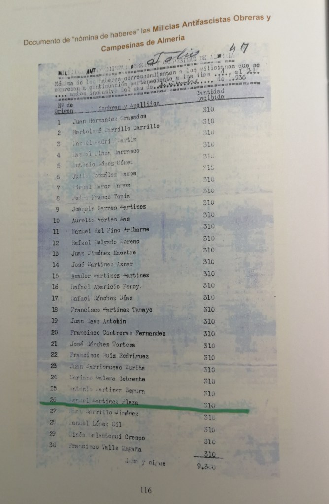 Permitidme, una referencia muy personal. Quiero hacerlo aquí en este espacio tan digno, para rendir homenaje a mi abuelo Crotato, un fiñanero de Almería, que murió en una cárcel franquista por defender la legalidad republicana[i]. Para reivindicar la memoria de mi padre que se alistó con 17 años en las Milicias Antifascistas Obreras y Campesinas de Almería, para defender la República. Y la de mi madre, junto a su padre y hermanos, que huyó desde la campiña de Córdoba hasta Almería, perseguidos por la aviación fascista. Salieron de Cañete dejando la mesa puesta, una Desbandá más, buscando refugio de las bombas y de la barbarie fascista.