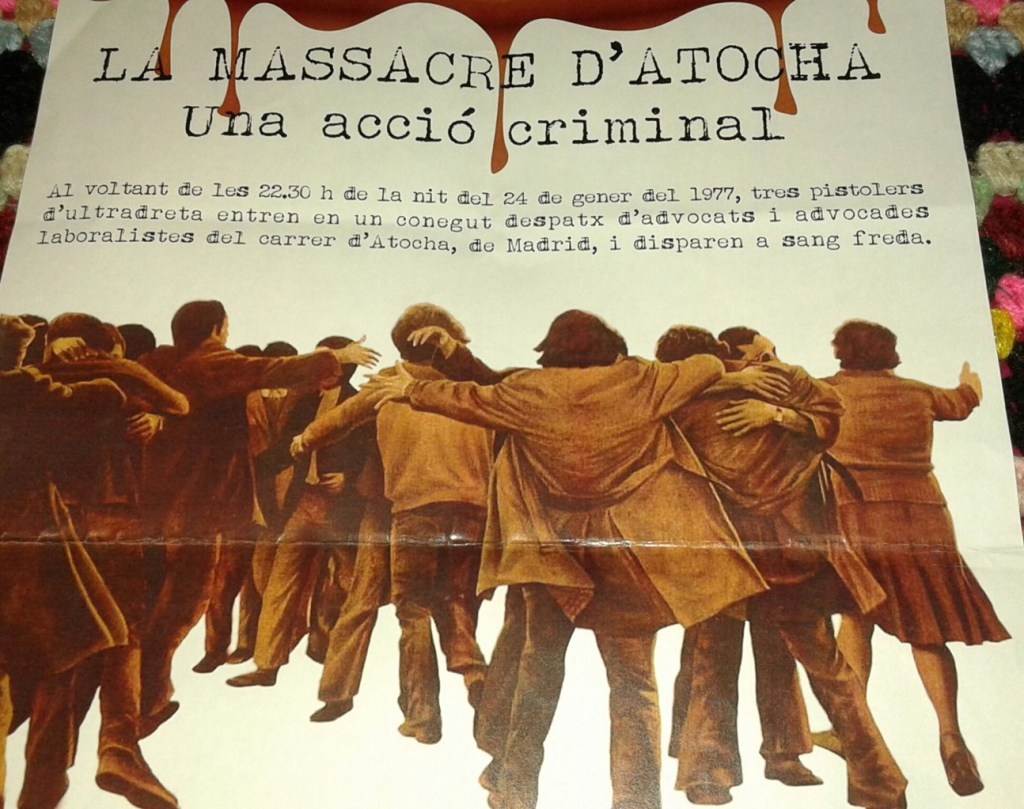 [Fa 40 anys la història es va accelerar. En aquella època em va tocar viure a Madrid les manifestacions, vagues i lluites populars contra la dictadura. Formava part del nucli de direcció de la UJCE. Veníem d’un 1976, cabdal en la lluita per les llibertats. La darrera setmana de gener va ser tràgica, com ho va relatar Juan Antonio Bardem a la pel·lícula “Siete días de enero”. El dia 23 havia estat assassinat a trets pels grups d’ultradreta l’estudiant Arturo Ruiz García, que participava en una manifestació pro amnistia. El dia 24, i en la manifestació de protesta per aquest atemptat, Mari Luz Nájera moriria per l’impacte d’un pot de fum de la policia. El pitjor va arribar a les 22,30 d’aquell dia. Tres ultradretans entren al despatx d’Atocha, 55 i disparen contra les nou persones que troben. Luis Javier Benavides, Serafín Holgado, Ángel Rodríguez, Javier Sauquillo i Enrique Valdelvira, cauen morts. Miguel Sarabia, Luís Ramos, Dolores González y Alejandro Ruíz-Huerta (la única persona que encara viu d’aquella massacre), van ser greument ferides.]