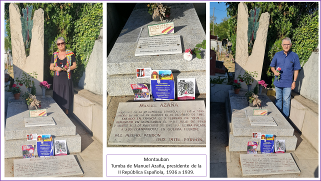 Estas jornadas venían precedidas de otras once. La más reciente en Portbou, en octubre de 2022, como nos recuerda Mercè en la crónica que se añade al final. También las reuniones preparatorias, una en Olorón Saint-Marie durante el mes de febrero, con la inolvidable visita al campo de Gurs, guiados por Mylène Lacoste y Raymond Villalba, un privilegio; y la otra en Huesca, durante el mes de junio, donde expresábamos nuestra preocupación ante los resultados electorales en los comicios locales y autonómicos de finales de mayo en España. Añadiendo también nuestro empeño colectivo en la defensa de las políticas públicas y las leyes de memoria democrática: “sin memoria democrática no hay futuro en libertad”. Por esa razón, también, quisimos testimoniar en Montauban nuestro modesto homenaje ante la tumba de Manuel Azaña, Presidente de la República española, fallecido en noviembre de 1940, y a todas las personas (centenares de miles de mujeres, niños, ancianos, no hay que olvidarlo) del exilio republicano de 1939.