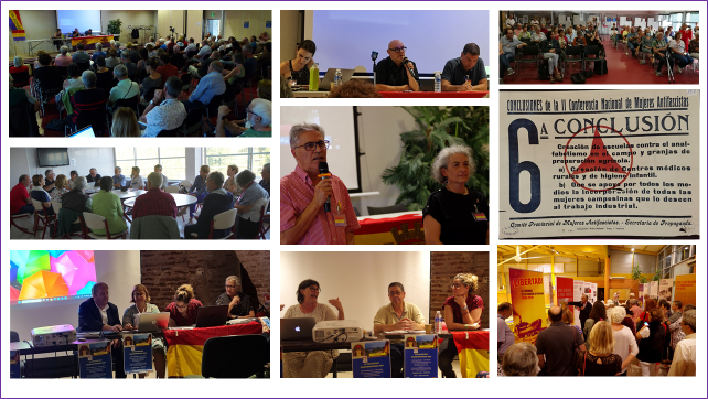 Por la tarde tuvo lugar la mesa redonda sobre feminismo. Evolución de las políticas de igualdad de género. Desde la transición española. Análisis de las legislaciones francesa y española. Consol Hernández, vicepresidenta de ABIC, y Pascale Pérez, MER 47, hicieron un recorrido por la lucha del movimiento feminista a lo largo del siglo XX, destacando particularmente las conquistas de las mujeres durante el período de la República, el retroceso que significó su negación y derogación durante el franquismo, y destacando la memoria del combate por los valores democráticos y la igualdad durante la dictadura y la transición. María Freixanet Mateo, Licenciada por la UPF, y experta en políticas públicas, hizo una exposición de las políticas de igualdad de género que se han promulgado desde la transición hasta ahora, también las dificultades para su implementación; complementada con la descripción de Christine Roul, abogada, miembro del Tribunal de Apelación de Agen, respecto a la situación en Francia. Tal como se recoge en el Manifiesto en el apartado cuarto: “hay que incorporar y reconocer la trayectoria y memoria del feminismo a lo largo del siglo XX, en su combate por los valores democráticos y la igualdad, más aún ahora que sus logros y conquistas se ven en peligro, amenazados por los discursos y las prácticas de la extrema derecha, seguidos por las de la derecha tradicional”. Debemos congratularnos —para avanzar en esta perspectiva—, de que el combate por las políticas de igualdad y contra la violencia de género, haya ocupado un espacio central, nuclear, en todos los ámbitos de trabajo de las Jornadas.