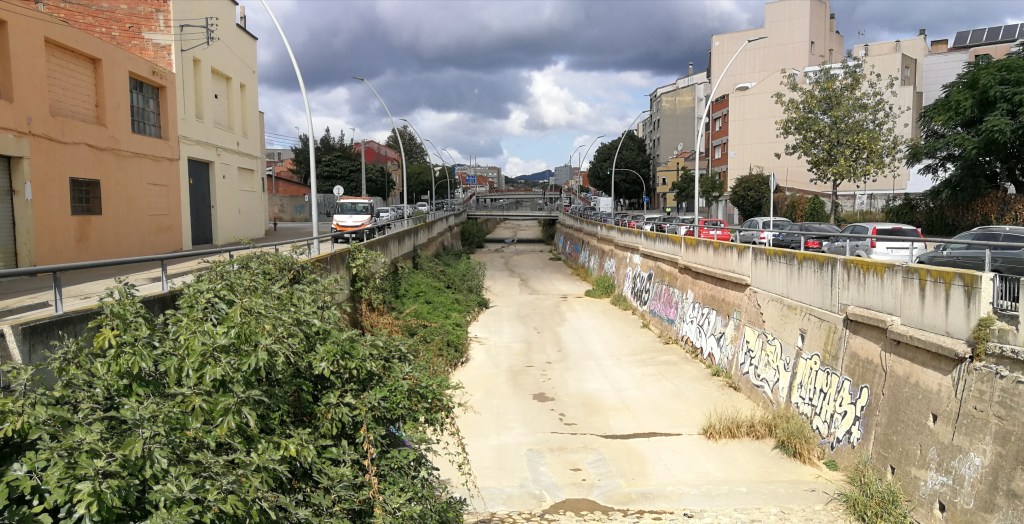 Però, justament, per aquest motiu, la seva dificultat i o impossibilitat, cal innovar en dos aspectes prioritaris. La possibilitat de repensar la mobilitat concentrada en els dos vials, font de contaminació i els seus efectes de barrera de ciment i de fractura urbanística. I en segon lloc, generant i guanyant nous espais i passeres transversals en forma de plataformes elevades sobre la riera, com hem vist a moltes ciutats amb rieres semblants. Plataformes toves, perfectament inundables, si fos el cas, que ajudin a millorar, de veritat el valor paisatgístic, amb ombres per caminar, revestiments verds o amb tendals, que fomentin el benestar i salut mental del veïnat. Fent veritables refugis climàtics atenuant l’escalfor de les vies urbanes cimentades i motoritzades.