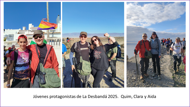 A muchas otras como Laura, Aida y Mónica, que me acogieron y cuidaron. A todas las mujeres que nos regalaron su sonrisa cada mañana para emprender la marcha, más numerosas que los hombres y mucho mejor preparadas física y mentalmente. Un aliciente para iniciar con buen pie cada jornada. Sabiduría y conocimiento. A las más jóvenes como Clara, a los voluntarios y las voluntarias, y a Quim, el más joven de los inscritos, tataranieto del último alcalde republicano de Pollença. A Antonio Perucha, por su complicidad. A Dionisio con quién compartí, sin yo saberlo, amistades, militancias y utopías de los años 60 y 70 para cambiar el mundo. A la parisina Michelle de ascendencia polaca, cuya historia familiar jalona la Europa del último siglo. Al “Guti” el sabio sevillano, teorizando “los tres silencios, que ya son cuatro”. A Raimon, que nos dio un susto y se repuso para recibirnos en Almería. A Esteve, compartiendo otras literas de madrugada. A todos y a todas, gente buena, que me dispensarán por no citarlas y hacer este reconocimiento interminable. Y especialmente para Mercedes, con una presencia puntual cada edición, y ahora casi cumpliendo 83 años, que nos preparó los buñuelos y el chocolate de madrugada.