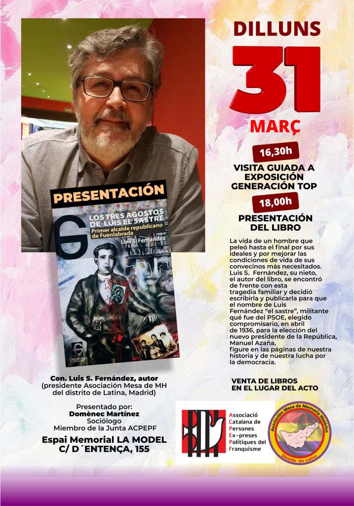 Hoy hemos venido a hablar de un libro importante. “LOS TRES AGOSTOS DE LUIS EL SASTRE”. Que nos presentará su autor Luis S. Fernández, nieto del primer alcalde republicano de Fuenlabrada (Madrid) fusilado por el fascismo el 9 de agosto de 1940.