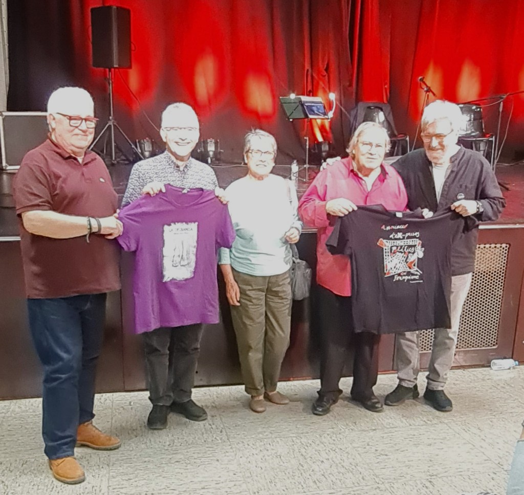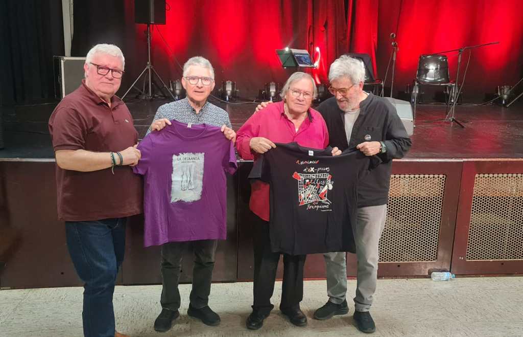 Y también del homenaje en la Sala Joventut, el 11 de marzo del año 2022, donde pudimos recordar que Josep Guinovart, el autor de la portada de su disco Coplas para Manuel Gerena, es también al autor del logo de nuestra Asociación. Un encuentro que tuvo continuidad en el mes de noviembre, en el Homenatge a Catalunya, donde Manuel Gerena, estuvo acompañado de Paco Ibañez, Pi de la Serra, y otros amigos y amigas de su dilatada trayectoria.