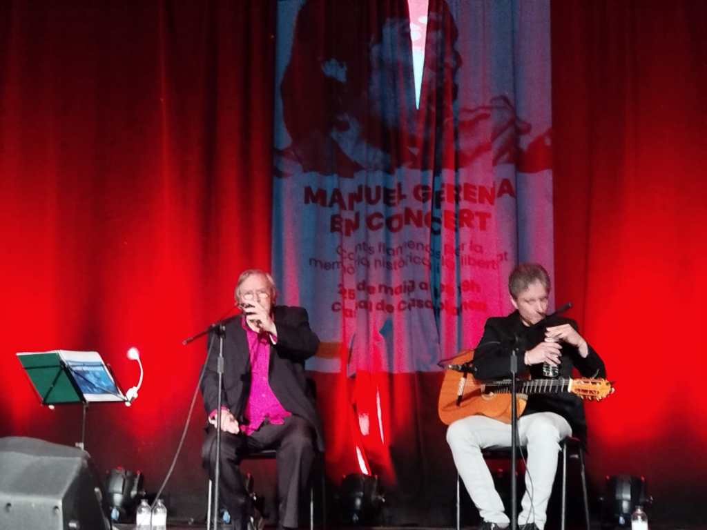 A punto de cumplir los ochenta, Manuel, nos regaló ayer en Sant Boi de Llobregat una clase magistral de cante hondo, comprometido, como siempre. En un escenario de rojo, como el color de su camisa y su corazón, su divisa. Desafiando a los consejos de su médico: “hay que guardar en la hucha la voz”, no quiso ahorrarse ningún palo, ni tampoco ninguna proclama contra el genocidio, y en defensa de los oprimidos del mundo. Fiel a su repertorio y a su pueblo. Un lujo en estos tiempos convulsos.