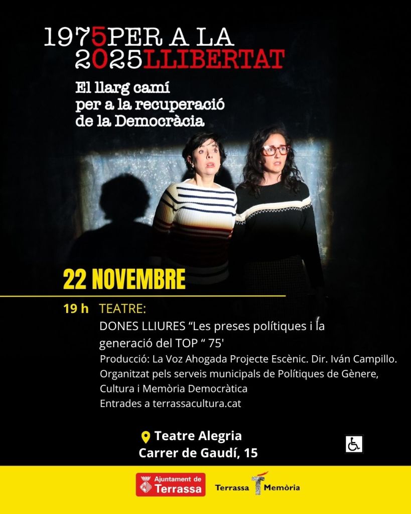Sábado 22, Obra de teatro “Dones Lliures” de La Voz Ahogada, al Teatre Alegría.